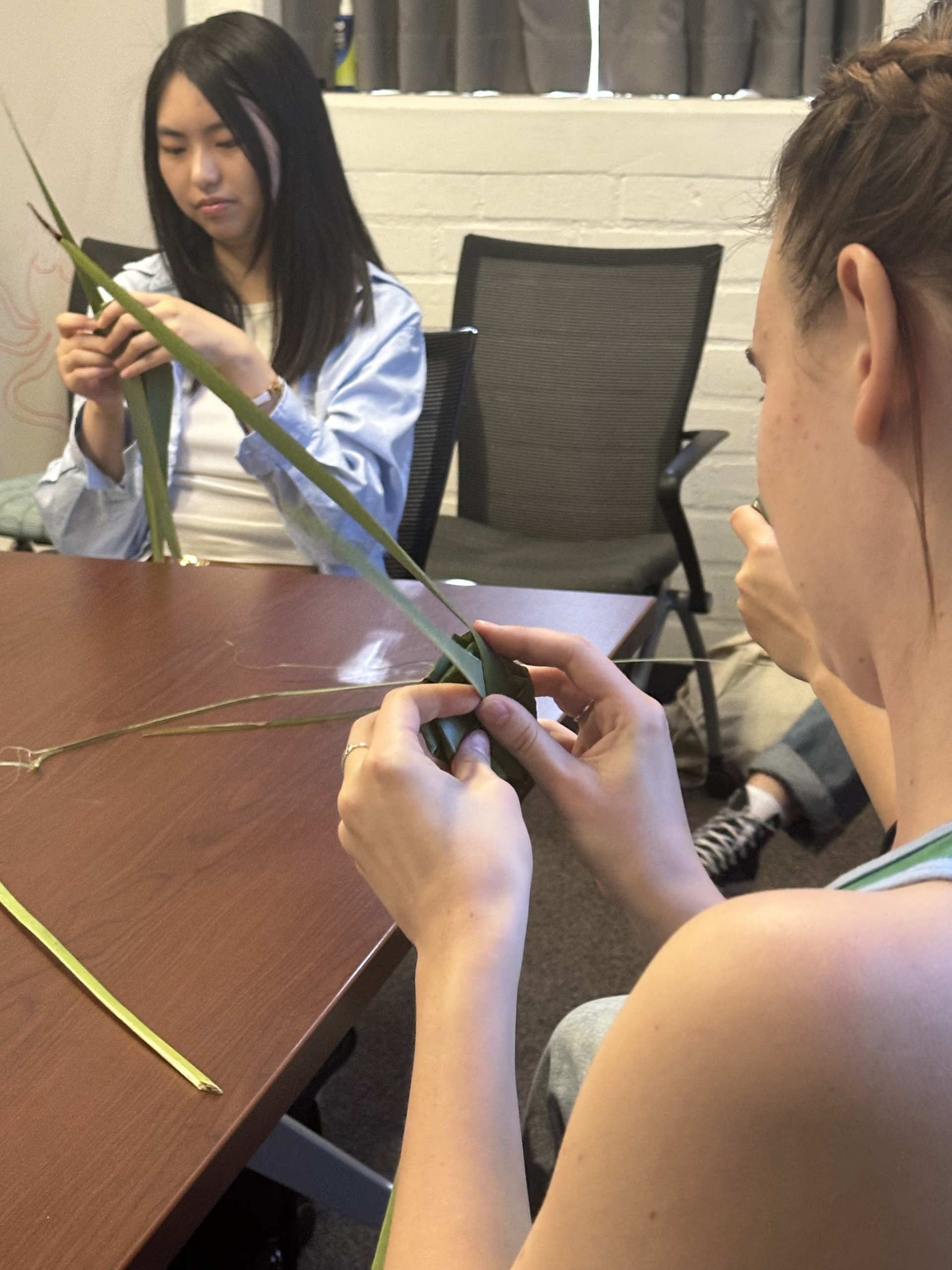 Last semester, I took Australia and Aotearoa New Zealand Art Histories, a seminar taught by Professor Julia Lum at Scripps College. The course focused on key topics and debates surrounding the histories and visual cultures of Australia, Aotearoa New Zealand, and the greater Pacific, from the eighteenth century to the present. In April, Māori scholar, historian, cultural practitioner, and O’Brien Distinguished Professor Brent Kerehona Pukepuke-Ahitapu visited and lectured about his research into taonga (treasured objects/things) held in collections worldwide, and how his work sheds light on the cultural legacies of the Māori and his ancestors. Brent followed his discussion with a rāranga putiputi (weaving) workshop, in which he taught us how to weave a rose using flax sourced from in and around Claremont.